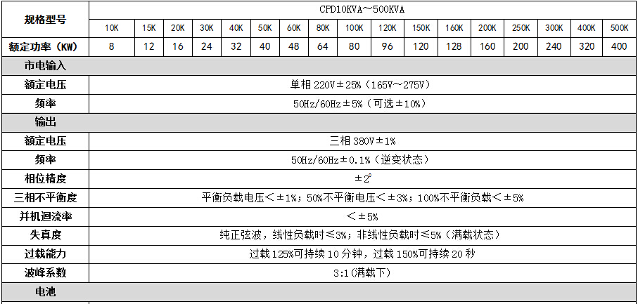 在铁路、轨道交通等使用现场,物理环境比较特殊,CPD系列UPS是公司针对铁路环境下使用而设计开发的高可靠单进三出工频双变换在线式UPS电源,功率器件容量的选择裕量大,过载能力强,设计使用寿命15年以上。容量从10KVA~500KVA,中英文界面大屏幕液晶显示,具备完善的检测、保护功能;采用DSP数字信号处理技术,低损耗大功率IGBT和静态开关,容量,性能,可靠性居国际高水平。